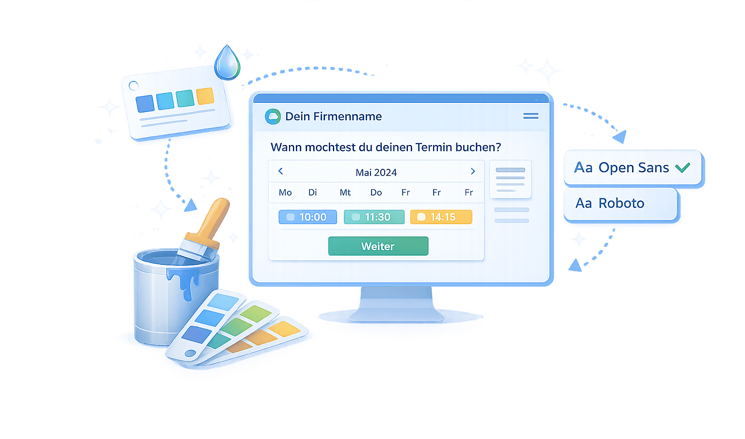 Passe Farben, Texte und Layout deiner Terminbuchung an dein Unternehmen an – damit alles perfekt zu deiner Website passt.