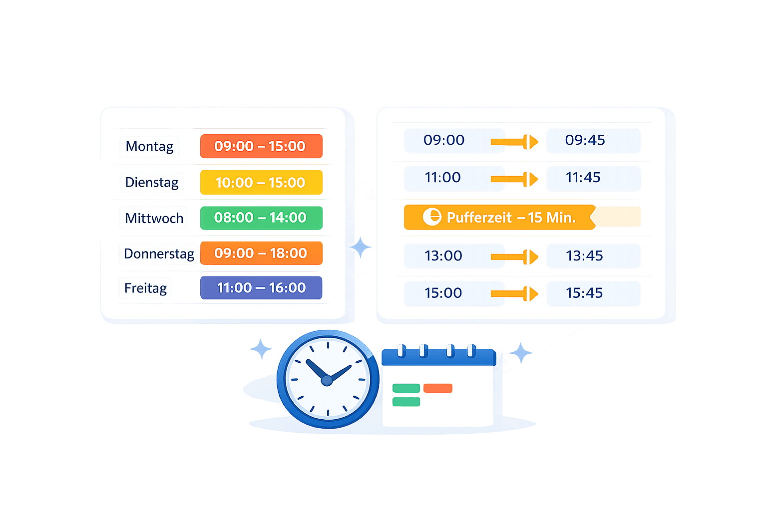 Flexible Verfügbarkeiten & automatische Pufferzeiten
