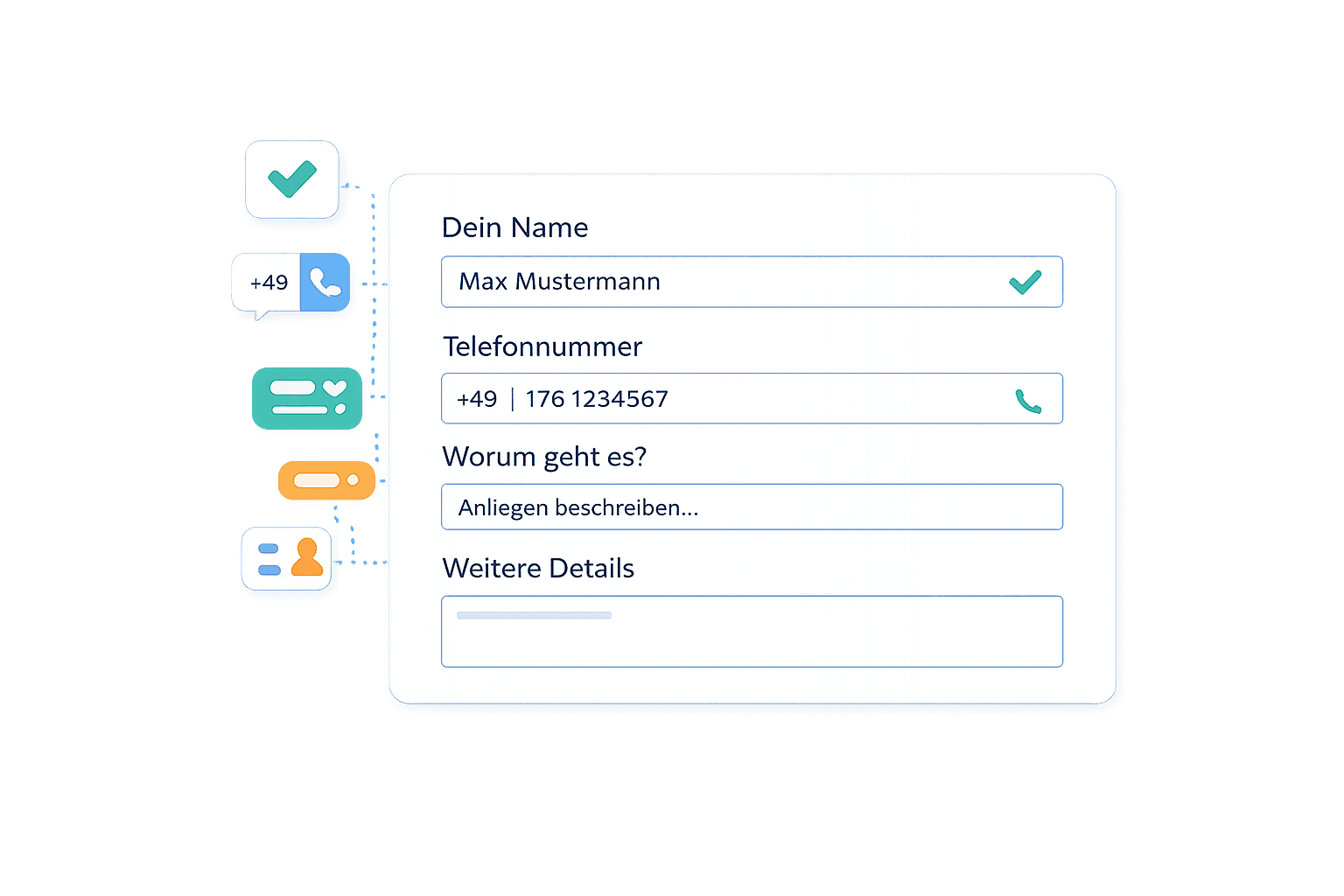 Frage beim Buchen genau die Informationen ab, die du brauchst – zum Beispiel Anliegen, Telefonnummer oder weitere Details.