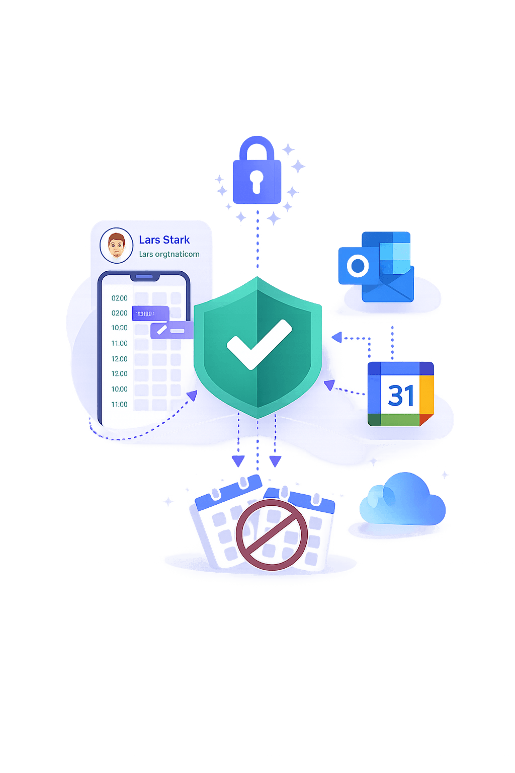 Du bestimmst selbst, wann Termine möglich sind. Blockierte Zeiten werden automatisch berücksichtigt und dein Kalender bleibt synchron mit Google, Outlook oder iCloud. So entstehen keine Doppelbuchungen – und deine Daten werden DSGVO-konform verarbeitet und sicher gespeichert.