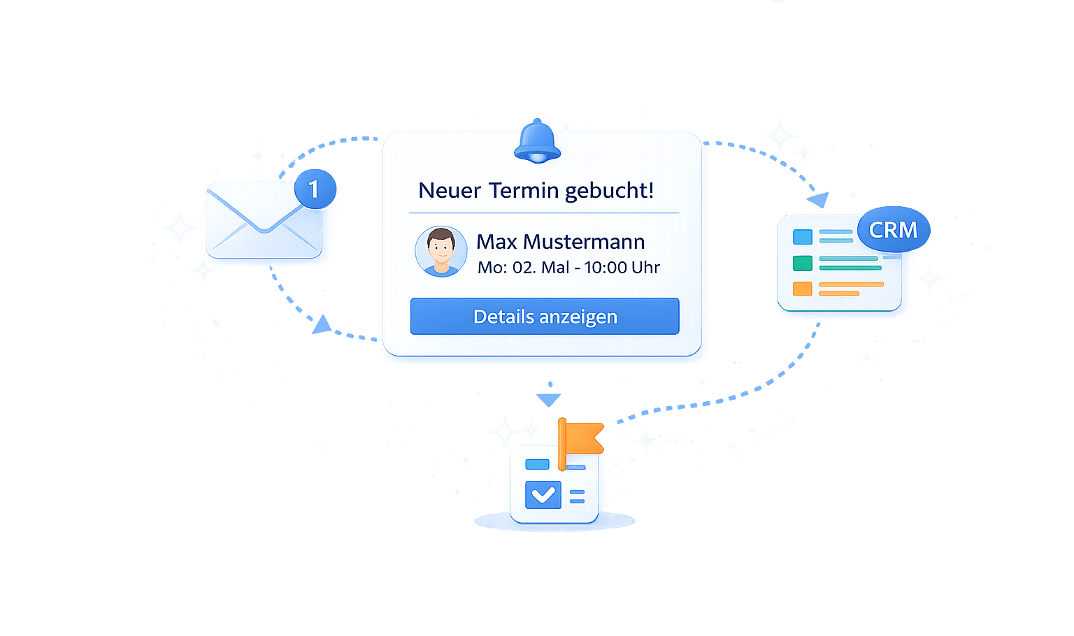 Nach einer Buchung können automatisch weitere Prozesse gestartet werden – zum Beispiel Follow-ups, interne Benachrichtigungen oder CRM-Einträge.