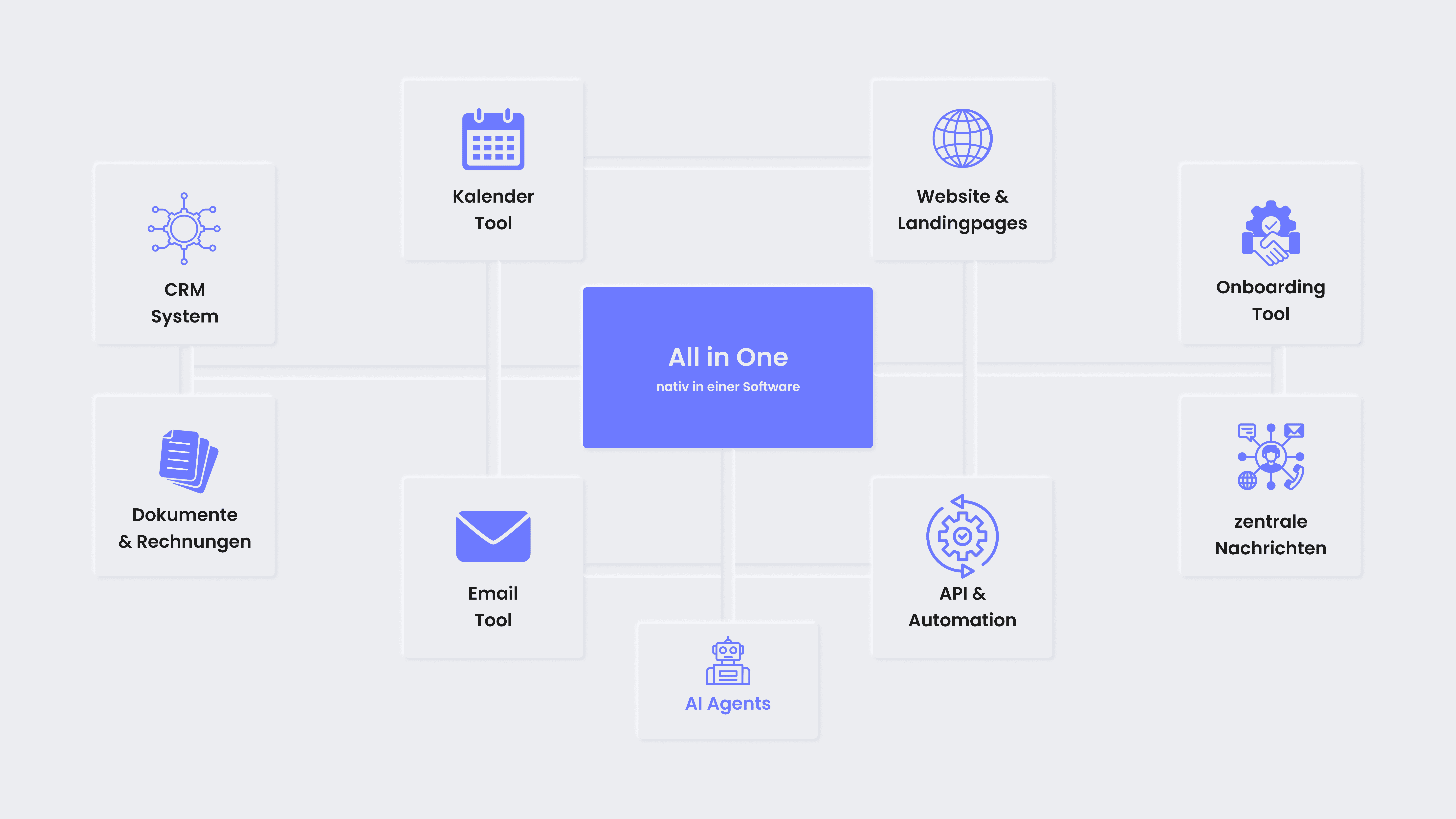 Entkomme endlich dem Tool Overload, nutze die revolutionärste All-IN-ONE Software (reduziere deinen Arbeitsaufwand um bis zu 60%), generiere Kundenanfragen wie am Fließband und werde zum Leader deiner Branche.
